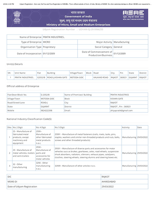 Pratik Industries is moving forward with the vision to become a world-class manufacturer of automobile parts and now exploring opportunities to export across the globe in leading ENGINEERING PARTS.